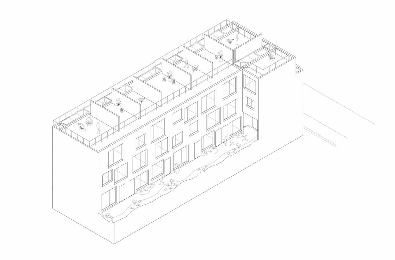 An apartment building for young families is implemented in a typically deep but slim plot in the Santa María La Ribera neighbourhood of Mexico City. To avoid inequality within the range of apartments, each one is designed as a three-floor townhouse with large south-facing windows overlooking a green courtyard. All apartments are entered through a shared patio. With an open living area on the ground level, each flat turns gradually more private with each floor that is vertically accessed by a private stair within the townhouse. Individual private terraces on the rooftop allow for outdoor living benefitting from the warm Mexican climate whilst inhabitants can enjoy views across the city. • Photography: Sergio Lopez